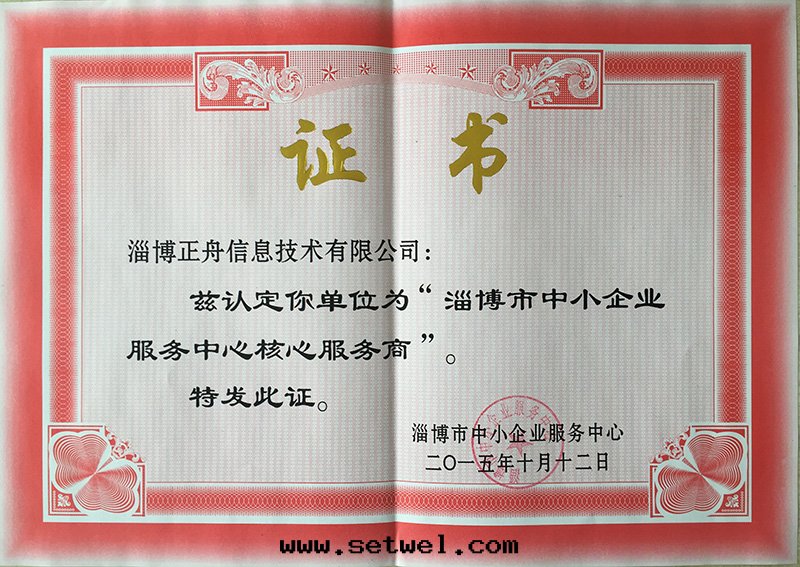 山(shān)東(dōng)正(zhèng)舟信(xìn)息技術(shù)有限公(gōng)司在(zài)2015年(nián) “淄博市(shì)中(zhōng)小企業服(fú)务中(zhōng)心(xīn)核心(xīn)服(fú)务商”的(de)評定(dìng)中(zhōng),被(bèi)認定(dìng)为(wèi)“淄博市(shì)中(zhōng)小企業服(fú)务中(zhōng)心(xīn)核心(xīn)服(fú)务商”。